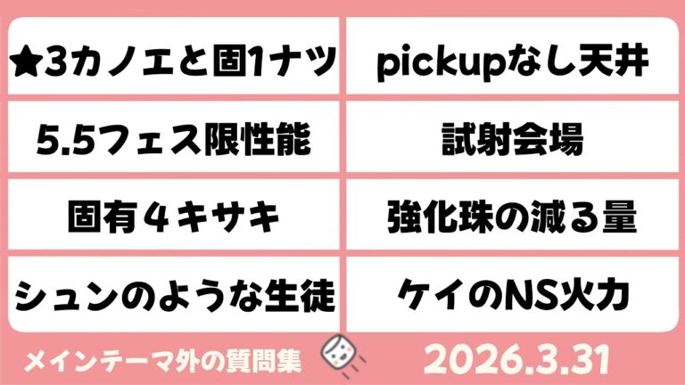 2026年3月31日 2026年4月5日 【マシュマロ回答】メイン外回答 固有4キサキ 強化珠が減る量 他【ブルーアーカイブ】Questions and Answers [Blue Archive] 続きを読む