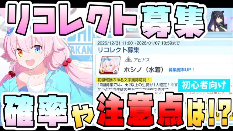 2025年12月31日 2025年12月31日 【ブルアカ】神名文字に注意点も!『リコレクト募集』実装後の確率や仕様は?周年ワカモ・水着ホシノ・ミカが選んで引ける!天井の共有や引き継ぎは?星3やすり抜け確率は?ガチャは引くべき?【ブルーアーカイブ】 続きを読む