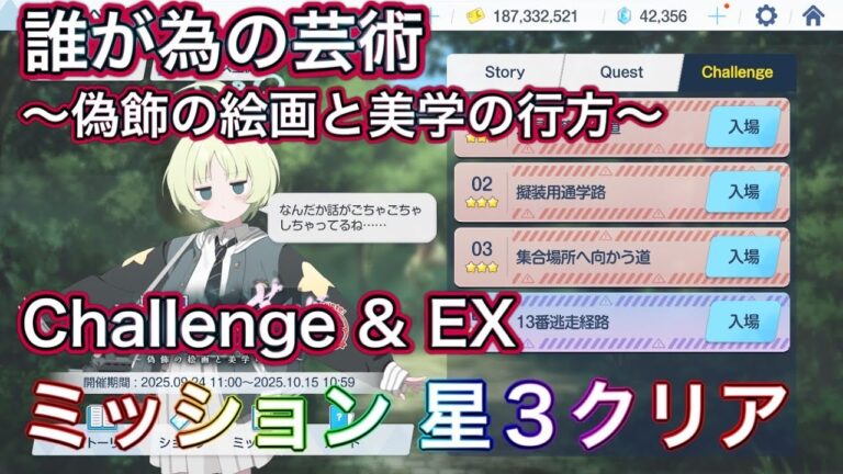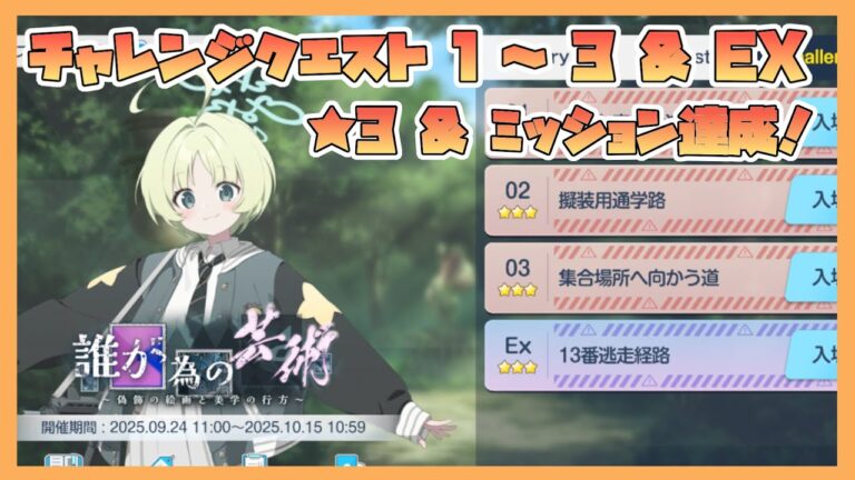 2025年9月25日 2025年9月25日 【ブルアカ】イベントチャレンジ 1~3 & EX 星3 & ミッションクリア 新イベント 誰が為めの芸術 ~偽飾の絵画と美学の行方~【コメントで解説】 続きを読む