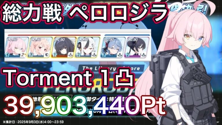 【ブルアカ】総力戦 ペロロジラ 屋外 Torment 1凸 39,903,440Pt【ブルーアーカイブ】